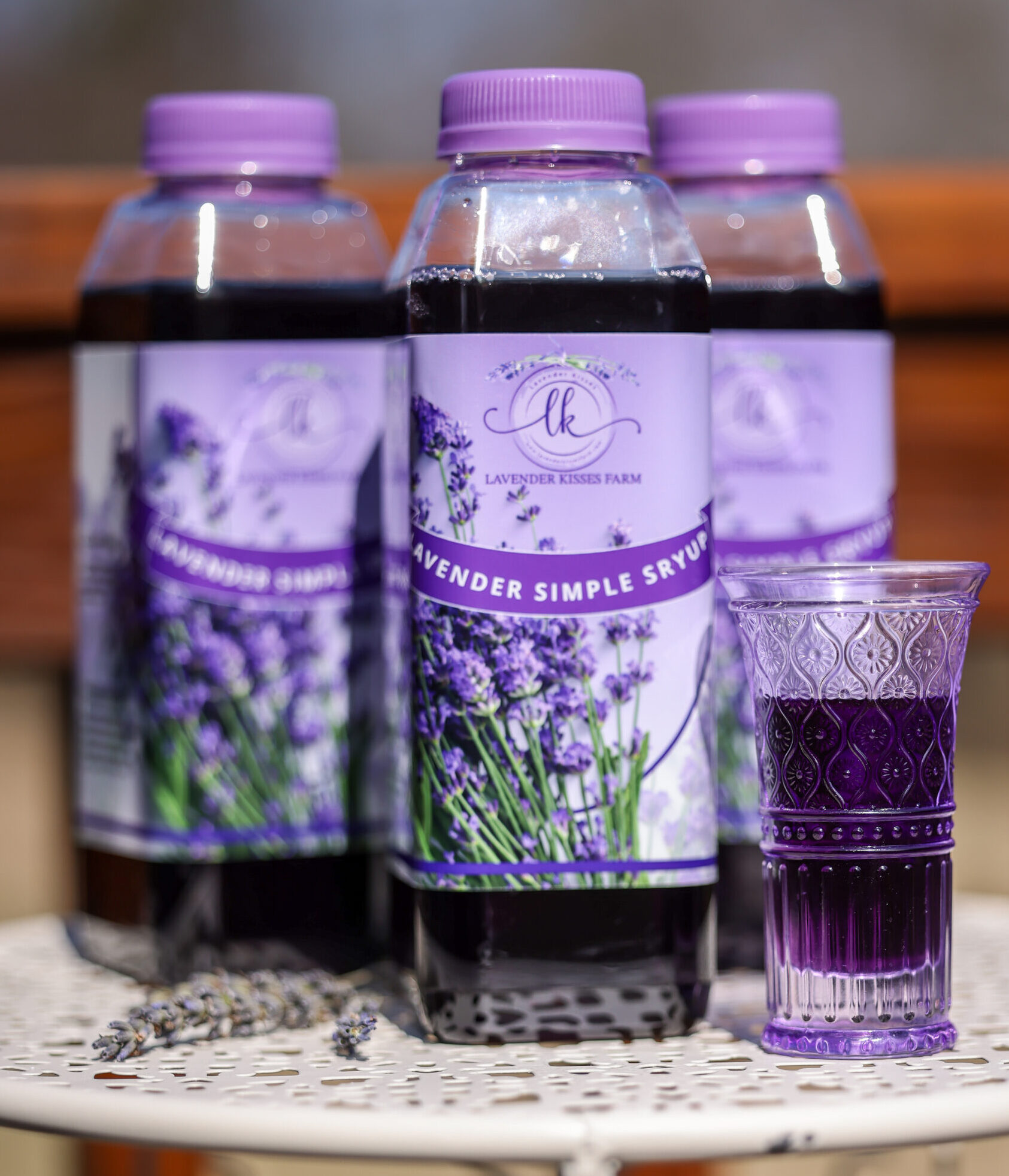 Lavender Kisses Simple Syrup 19oz large plastic bottle. You can add this is your lemonade, iced tea, hot cocoa, coffee, mock-tails or cocktails for a delicious twist!